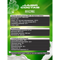 В состав гейнера Jumbo входит широкий профиль протеиновых молекул, дополненный моно- и полисахаридами, витаминами и минеральными добавками, в результате чего продукт снабжает организм необходимым количеством полезных элементов, не допуская развитие катаболических реакций.