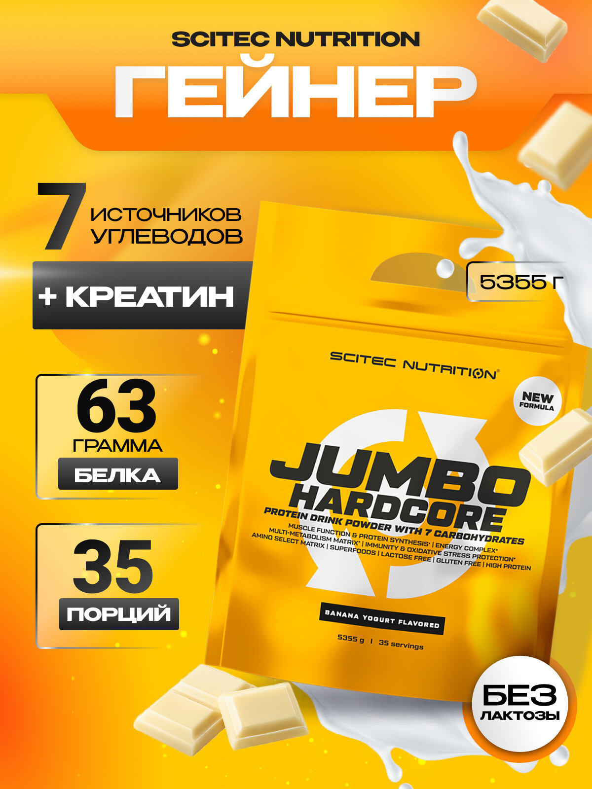 Гейнер для набора массы / Scitec Nutrition Jumbo Hardcore / 5355 г — белый шоколад: сравнение цен, характеристики, фото, актуальное наличие и цены.