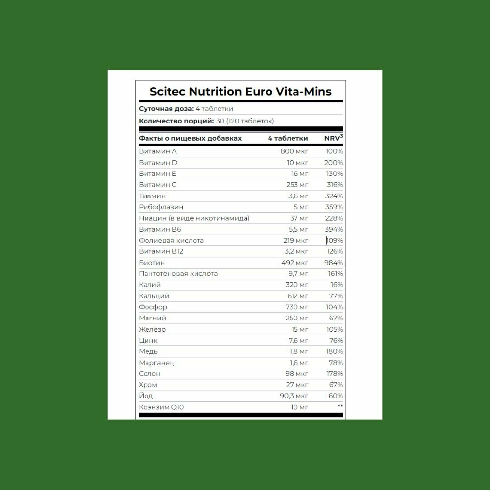 Купить Scitec Nutrition Мультивитаминный комплекс Euro Vita-Mins 120 tab с доставкой по всей России. Scitec Nutrition Мультивитаминный комплекс Euro Vita-Mins 120 tab: сравнение цен, характеристики, фото, актуальное наличие и цены.