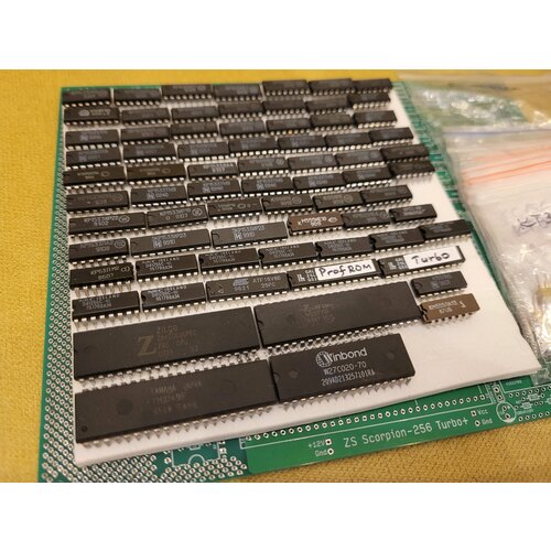 Набор для самостоятельно сборки компьютера Scorpion 256k Turbo+ В набор входит: печатная плата, все активные компоненты необходимые для сборки - микросхемы, резисторы, конденсаторы, диоды. Микросхемы ПЗУ и GAL поставляются в запрограммированном виде.