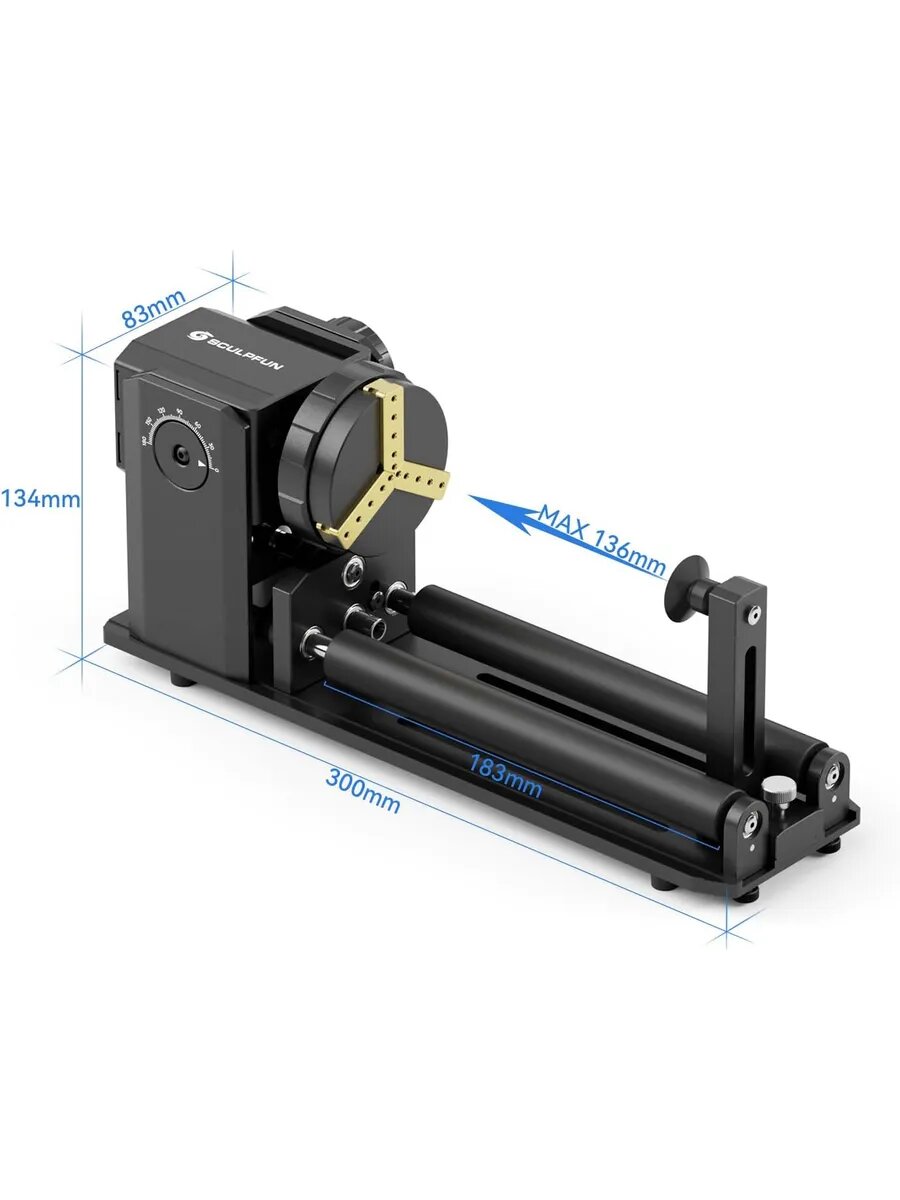 5. Широкая совместимость: ролик SCULPFUN поставляется с рулеткой и спиртовым уровнем, что облегчает измерение диаметра и окружности объектов и обеспечивает ровность гравированных объектов. Кроме того, ролики SCULPFUN широко совместимы с различными программами для гравировки, такими как LightBurn или LaserGRBL, и могут быть напрямую совместимы с S6/S6 Pro/S9/S10/сериями S30/серией S30 Ultra/SF-A9, предоставляя вам больше выбора и гибкости. 6. Многофункциональный опорный кронштейн: ролики SCULPFUN оснащены многофункциональной системой опорных кронштейнов. Задняя бабка использует ручной винт для надежной фиксации шариковых деталей. Двухколесный удлинительный кронштейн (приводной шкив) имеет функцию регулировки высоты и выбора трех передач ширины, что удобно для обработки сверхдлинных цилиндров. Такая конструкция делает поддержку и регулировку легкой и удобной, предоставляя больше возможностей обработки.