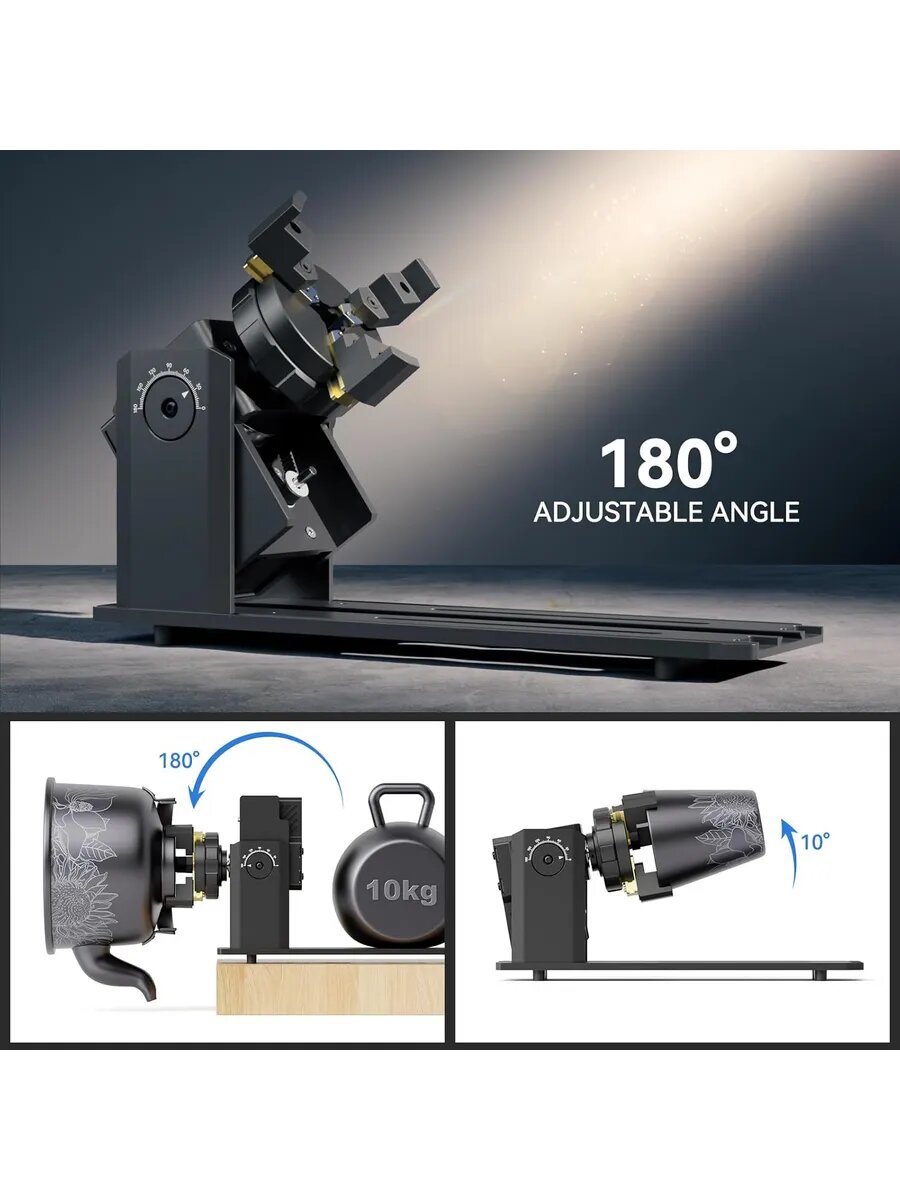 2. Регулируемый угол 180°: ролик оснащен регулируемой угловой пластиной когтя, а боковая сторона спроектирована с угловыми отметками для просмотра угла, что удобно для использования в различных сценариях и может гибко позиционироваться для удовлетворения различных потребностей гравировки и улучшения процесса гравировки.