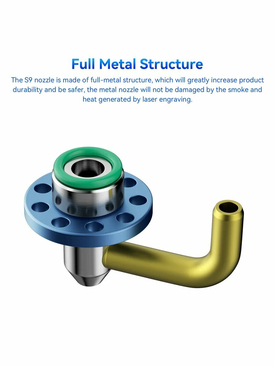 1. Официальное воздушное сопло SCULPFUN S9: это стандартное воздушное сопло S9, разработанное SCULPFUN, оно имеет полностью металлическую конструкцию и идеально подходит для лазера S9. Установка очень проста, и вам потребуется всего несколько минут, чтобы установить его.