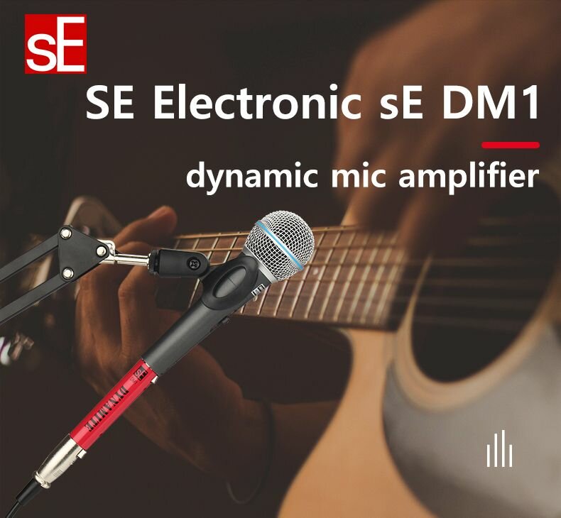 SE-DM1 Динамический микрофон усилитель сценический микрофон предусилитель - это ультратонкий активный линейный преамп от SE ELECTRONICS, который легко устанавливается между микрофоном и микрофонным предусилителем.