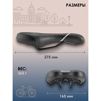 Седло имеет размеры 275x165 мм и весит всего 365 грамм, что делает его легким и удобным для переноски и установки на велосипеде.
