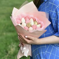 Купить Съедобный букет из клубники Pink love, M подарок для мамы, сестры, подруги или коллеги, для любимой девушки или жены с доставкой по всей России.