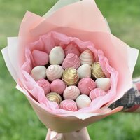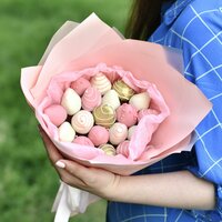 Съедобный букет из клубники Pink love, M подарок для мамы, сестры, подруги или коллеги, для любимой девушки или жены: сравнение цен, характеристики, фото, актуальное наличие и цены.