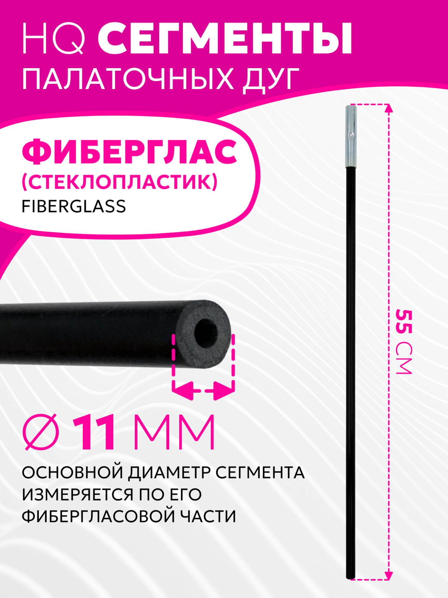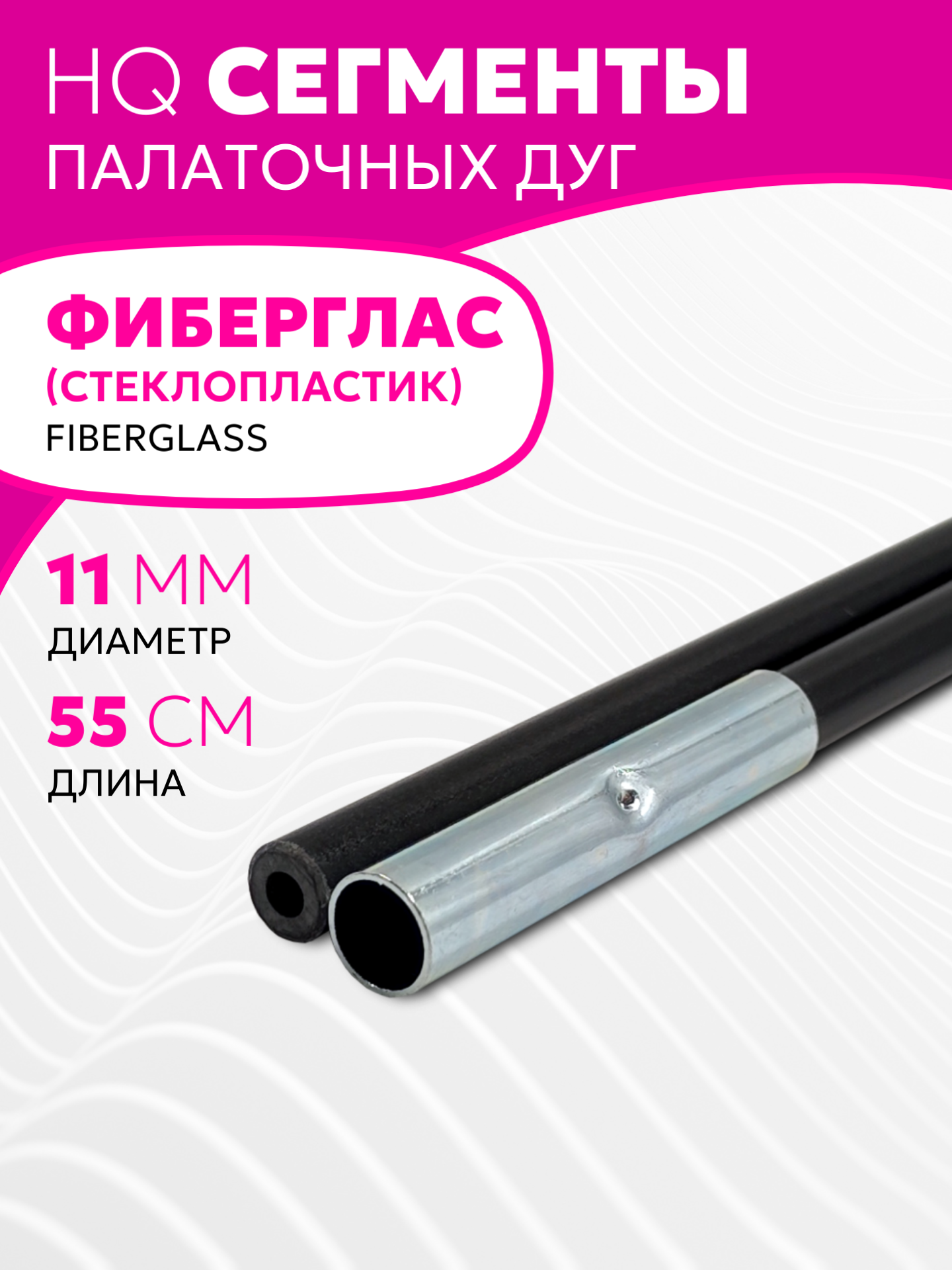 Высококачественные сегменты фибергласовых (стеклопластиковых) дуг для палатки. Диаметр 11 мм. Длина (с учётом стальной соединительной трубки) 55 см. В комплекте 30 штук. Подходят для большинства туристических палаток различных производителей.