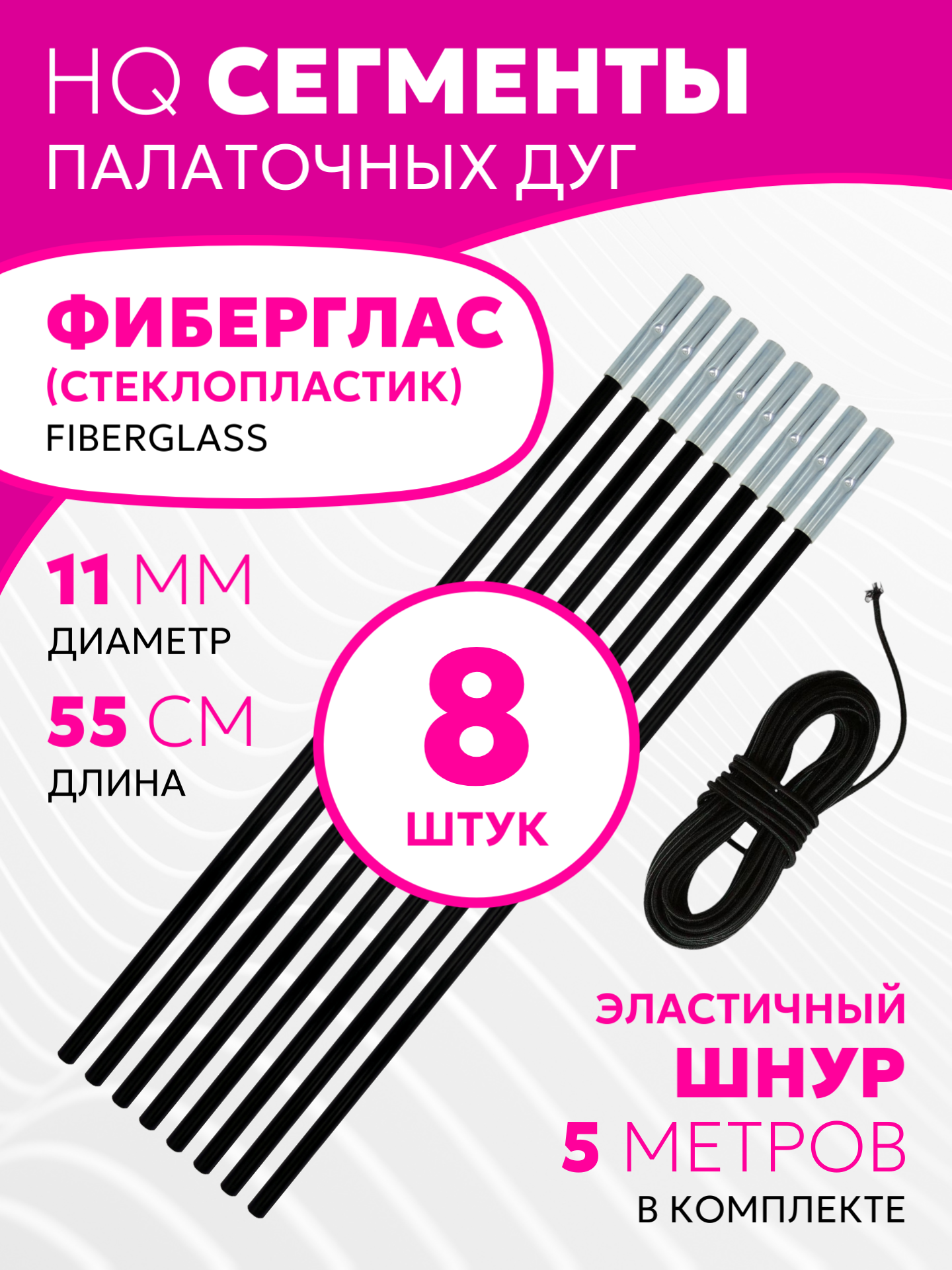 Купить Сегменты дуг для палатки (Ø 11 мм, длина 55 см, фиберглас, 8 штук) + эластичный шнур (5 метров) с доставкой по всей России.