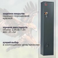 - **Компактные размеры:** Идеально подходит для хранения охотничьего оружия, пистолетов и боеприпасов.