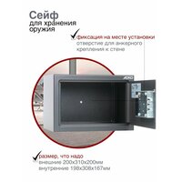 Сейф имеет компактные размеры (200х310х200 мм) и легкий вес (4,5 кг), что позволяет легко установить его в любом удобном месте - на полке в шкафу, на столе или прикрепить к стене или полу.