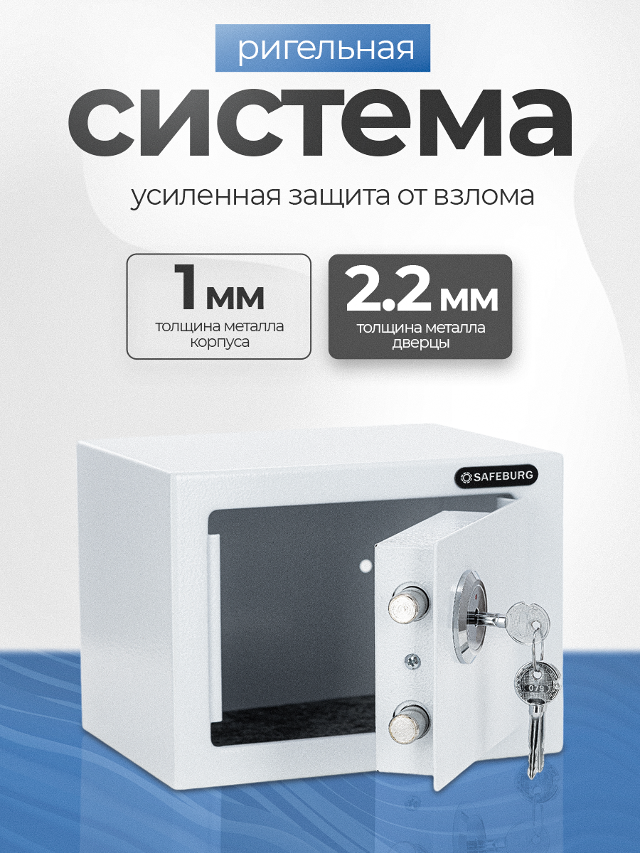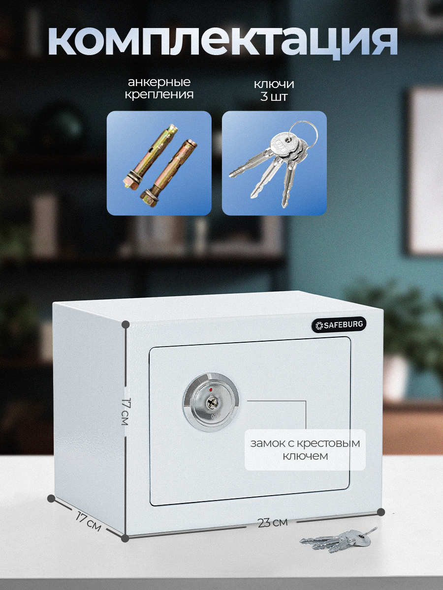 Сейф для денег и документов SAFEBURG SB-170K WHITE, 17х23х17 см крестовый ключевой замок, для дома/квартиры/офиса: сравнение цен, характеристики, фото, актуальное наличие и цены.