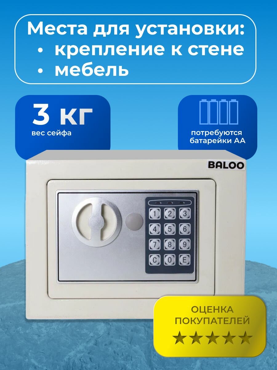 Сейф мебельный Baloo B-SE17EW-WT 230x170x170мм электронный, белый/ подарок для мужчины: сравнение цен, характеристики, фото, актуальное наличие и цены.
