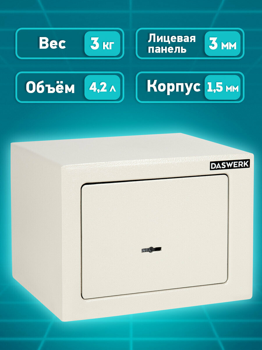 Сейф для денег и документов с ключом маленький мебельный, 170x230x170 мм, бежевый, Daswerk (Дасверк), 291339: сравнение цен, характеристики, фото, актуальное наличие и цены.