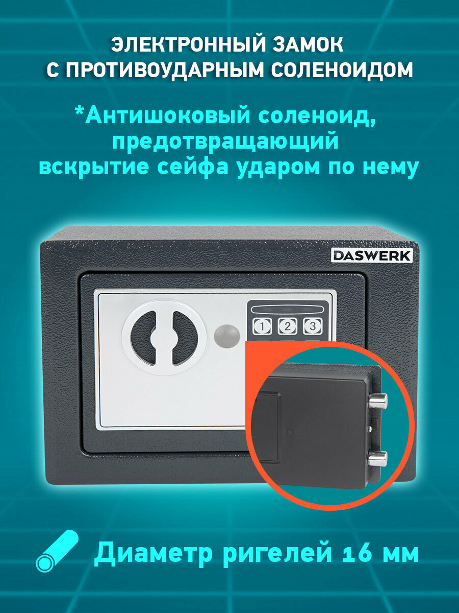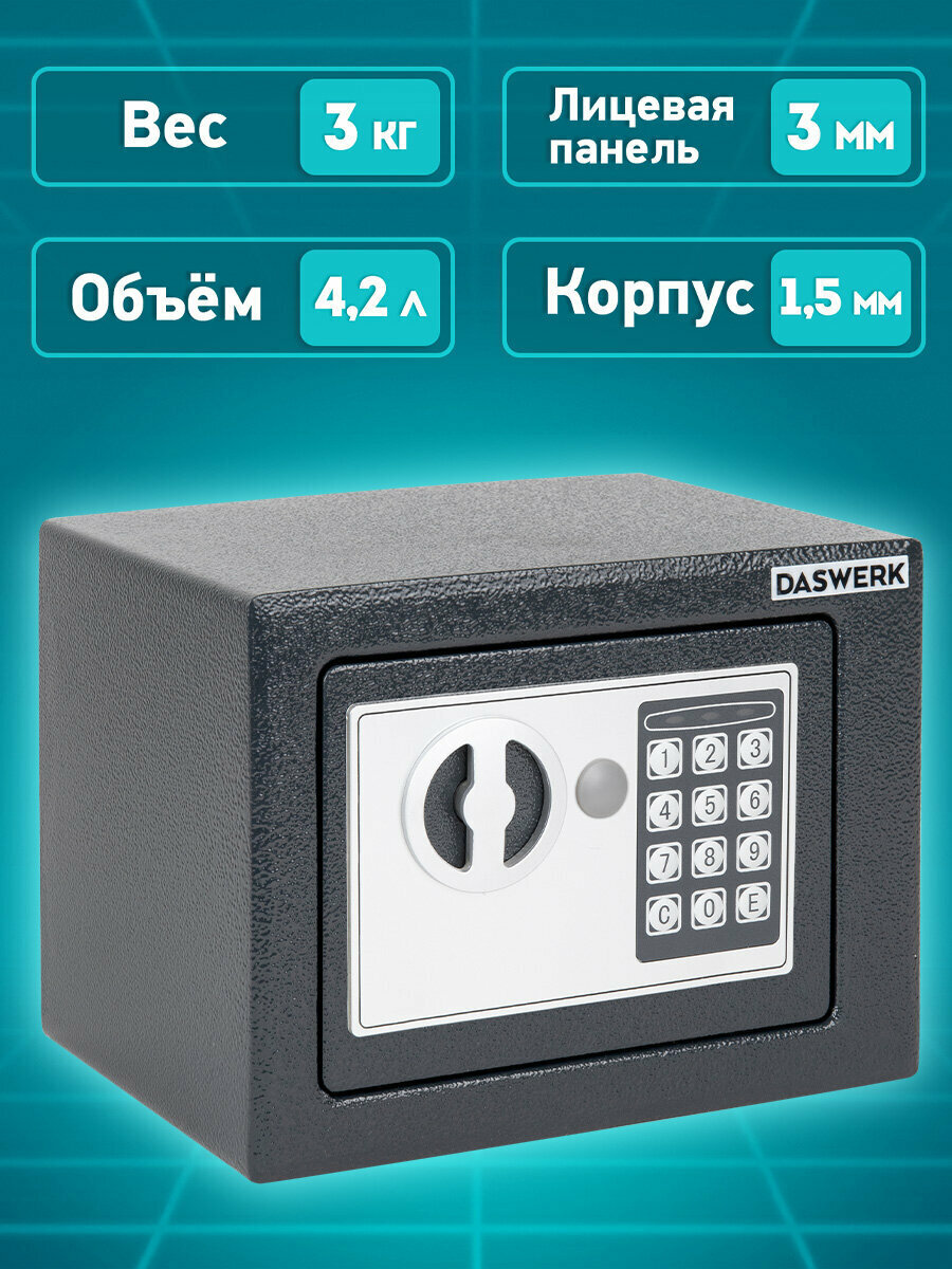 Сейф для денег и документов с электронным кодовым замком мебельный, 170x230x170 мм, Daswerk (Дасверк), 291338: сравнение цен, характеристики, фото, актуальное наличие и цены.