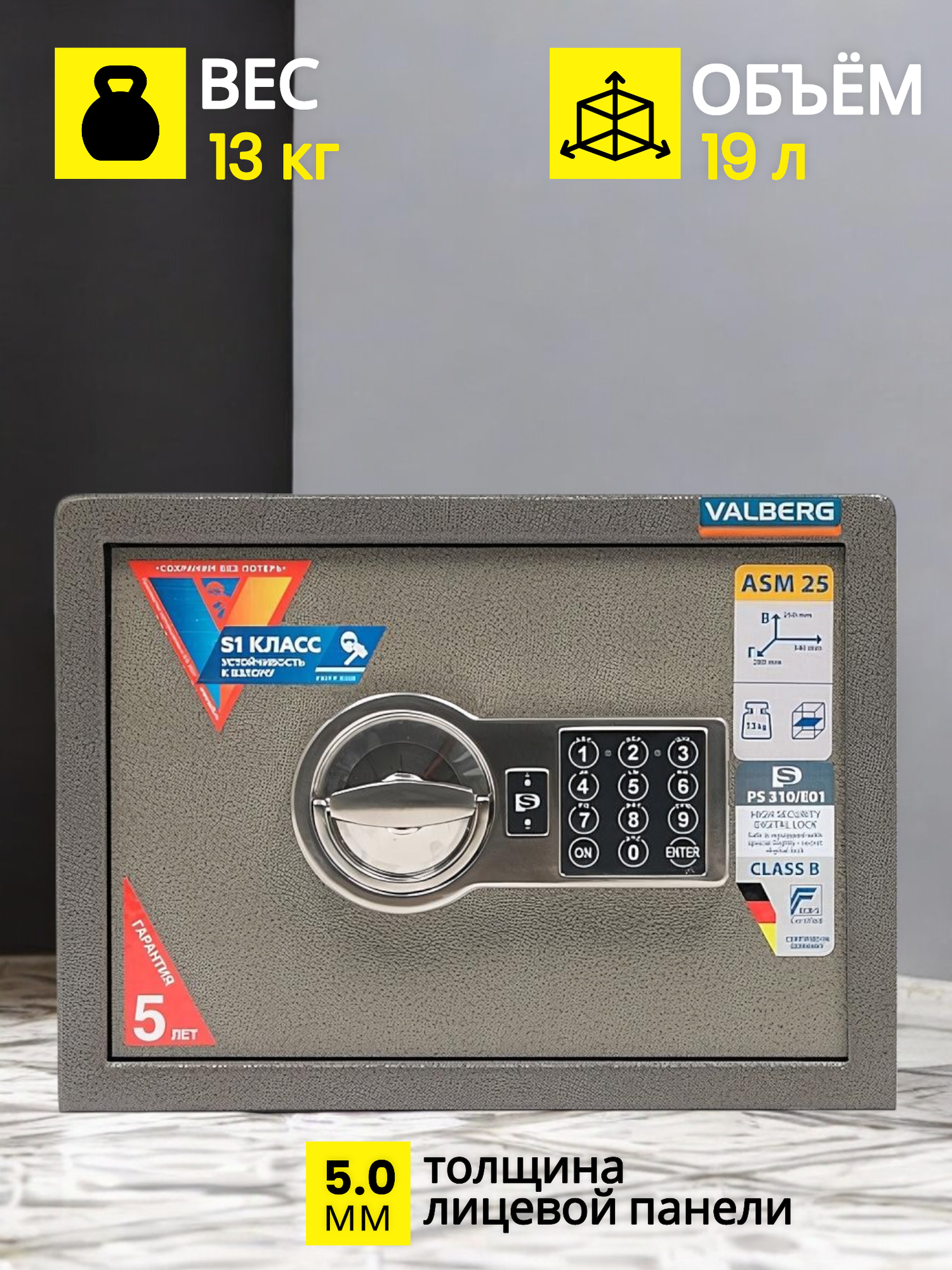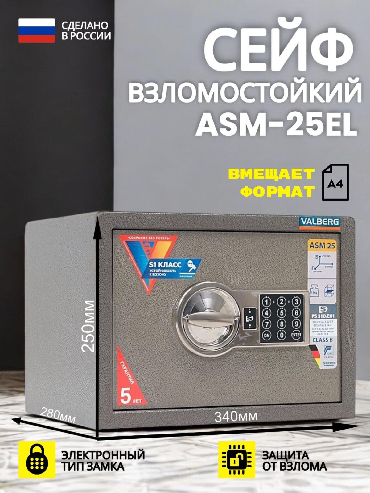 Сейф офисный взломостойкий VALBERG ASM 25 EL, серый, 340 х 250 х 280 мм, формат А4: сравнение цен, характеристики, фото, актуальное наличие и цены.