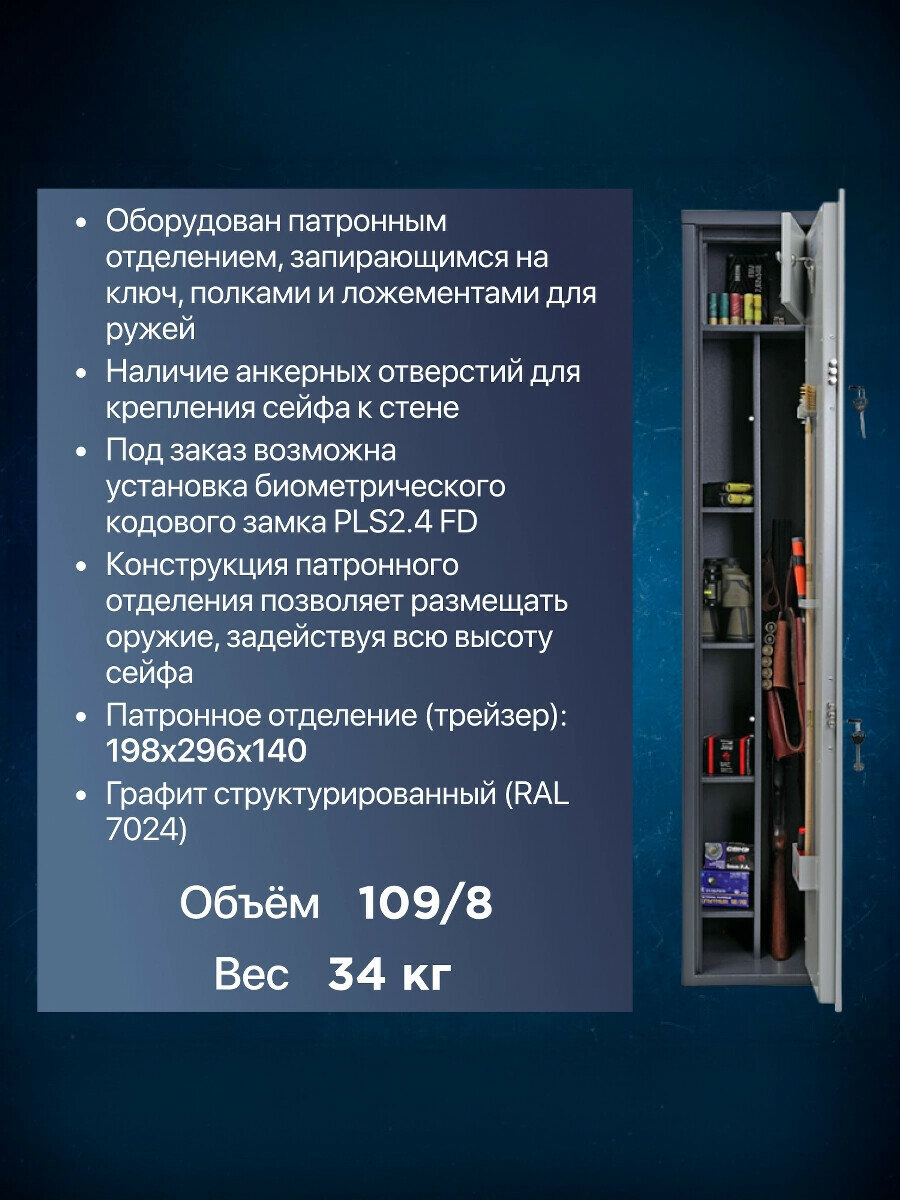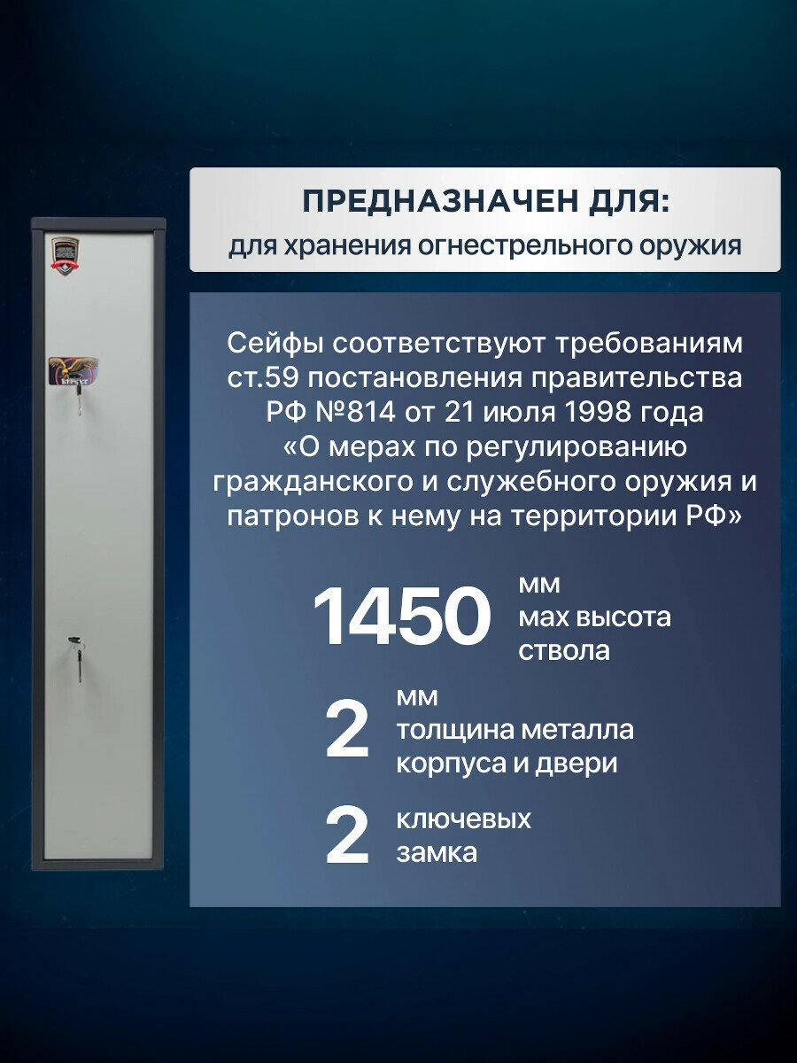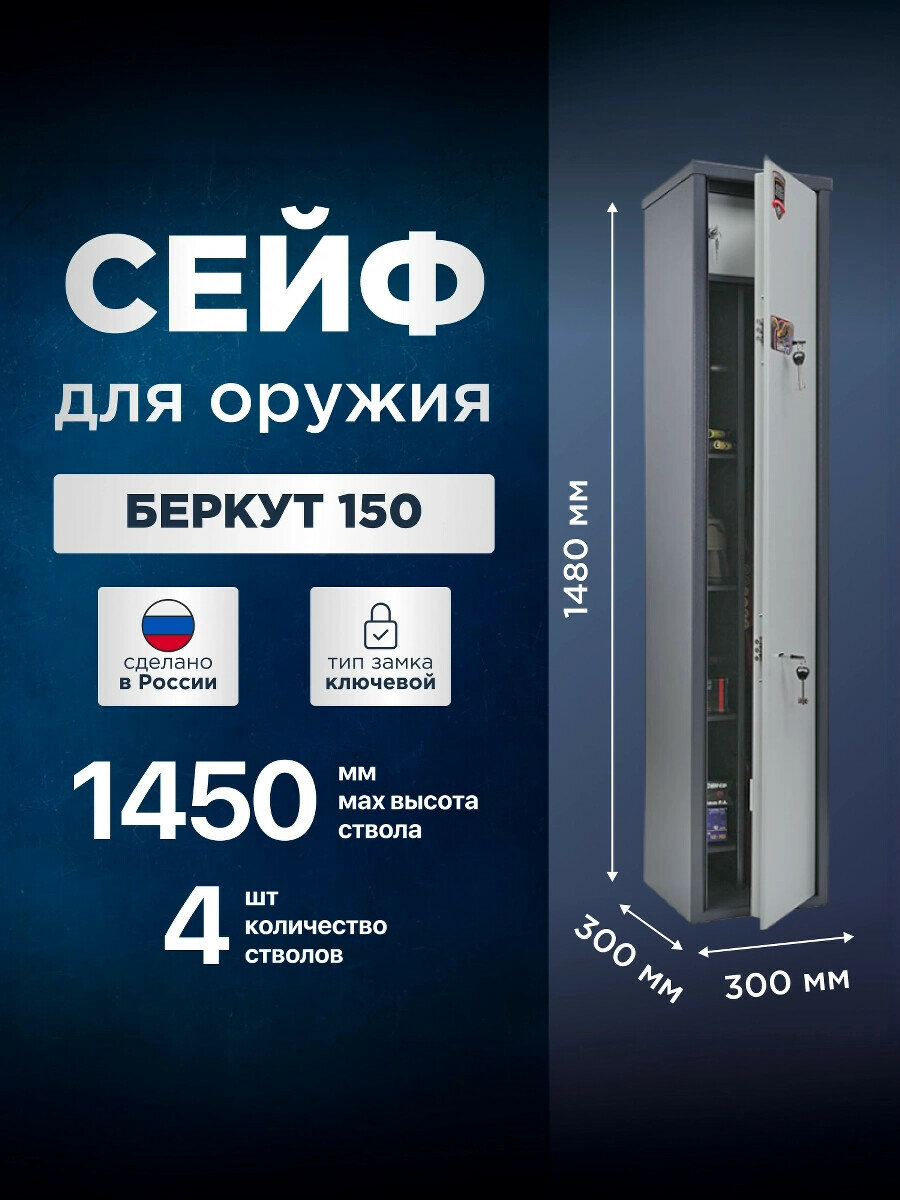 Сейф оружейный на 4 ствола AIKO Беркут 150, ключевой, высота ружья до 1450 мм, 1480x300x300мм: сравнение цен, характеристики, фото, актуальное наличие и цены.