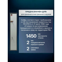 Сейф оружейный на 4 ствола AIKO Беркут 150, ключевой, высота ружья до 1450 мм, 1480x300x300мм