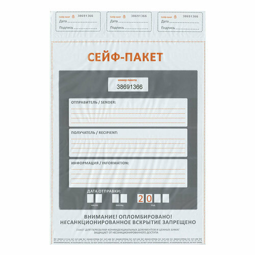 Сейф-пакеты полиэтиленовые, большой формат (562х695+45 мм), комплект 50 шт, индивидуальный номер: сравнение цен, характеристики, фото, актуальное наличие и цены.