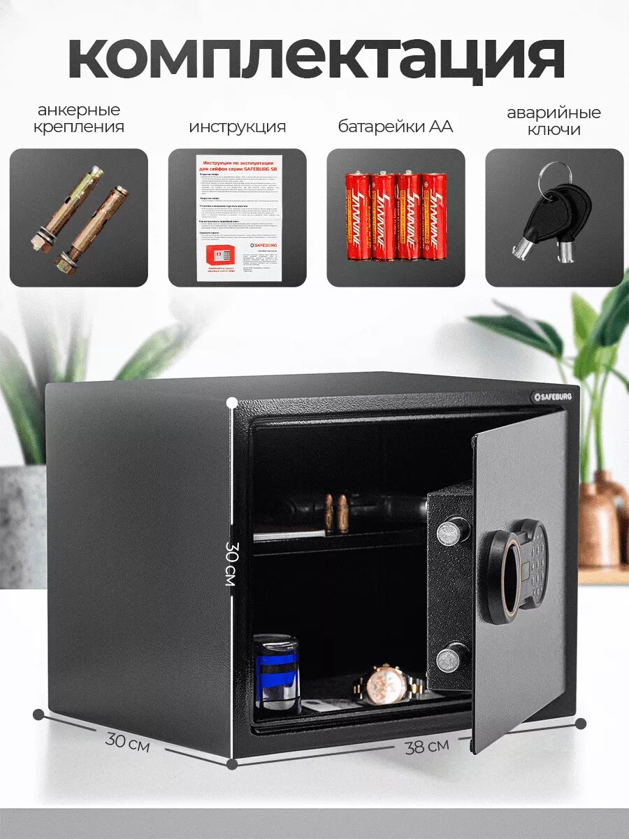 Сейф SAFEBURG SB-300 BLACK электронный кодовый замок. Для денег, документов, драгоценностей, для дома и офиса. 30x38x30 см: сравнение цен, характеристики, фото, актуальное наличие и цены.