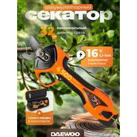 Купить Секатор аккумуляторный DAEWOO DAGP 3216Li SET с АКБ 3 Ач и ЗУ с доставкой по всей России. Секатор аккумуляторный DAEWOO DAGP 3216Li SET с АКБ 3 Ач и ЗУ: сравнение цен, характеристики, фото, актуальное наличие и цены.