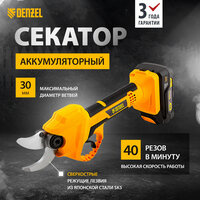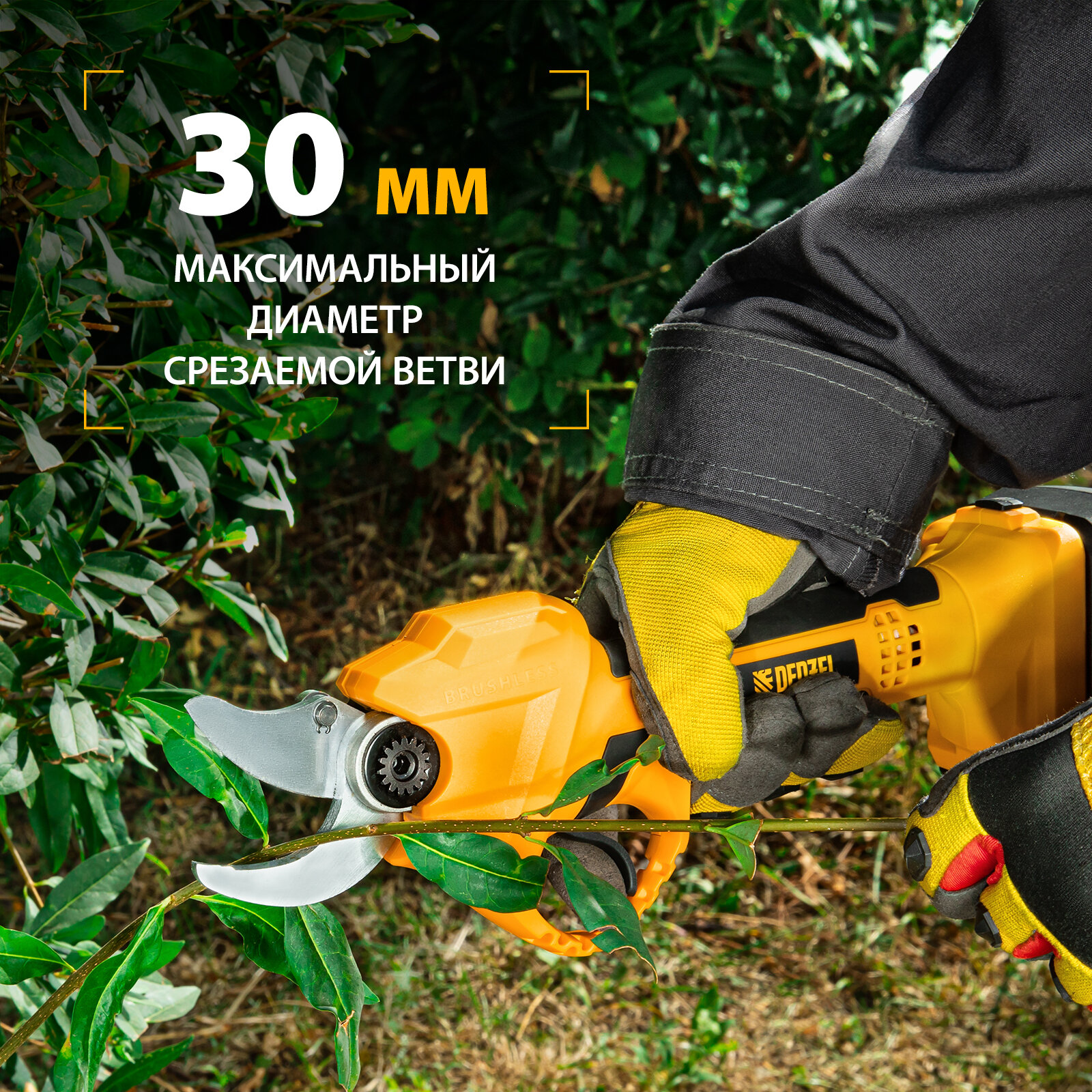 Секатор аккумуляторный садовый Denzel CP-30, 18В Li-Ion, 30см, бесщеточный двигатель и закаленные лезвия, АКБ и ЗУ 59435: сравнение цен, характеристики, фото, актуальное наличие и цены.