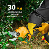 Купить Секатор аккумуляторный садовый Denzel CP-30, 18В Li-Ion, 30см, бесщеточный двигатель и закаленные лезвия, АКБ и ЗУ 59435 с доставкой по всей России.