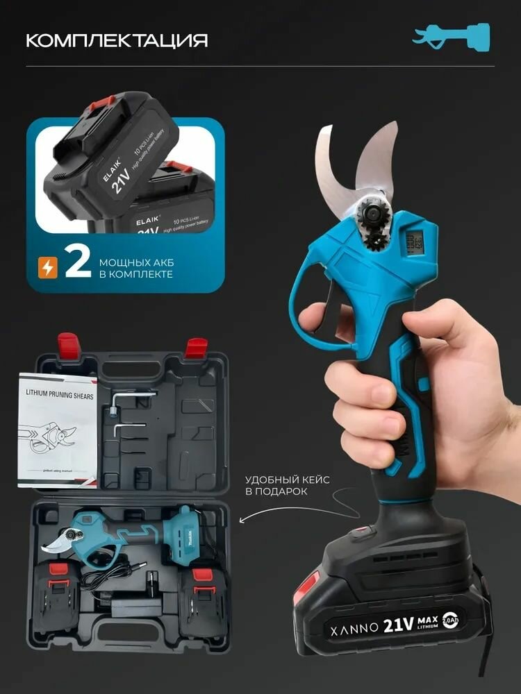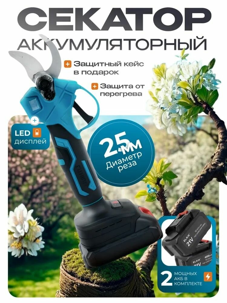 Секатор аккумуляторный садовый 2 АКБ, электрический сучкорез для деревьев и кустов: сравнение цен, характеристики, фото, актуальное наличие и цены.