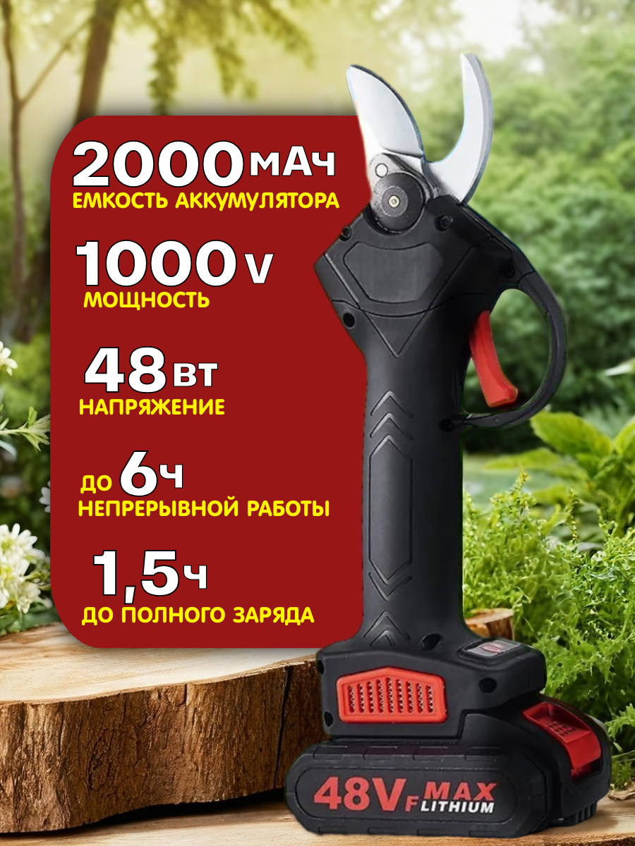 Секатор аккумуляторный садовый для деревьев и кустов, сучкорез, 2 сменных АКБ: сравнение цен, характеристики, фото, актуальное наличие и цены.