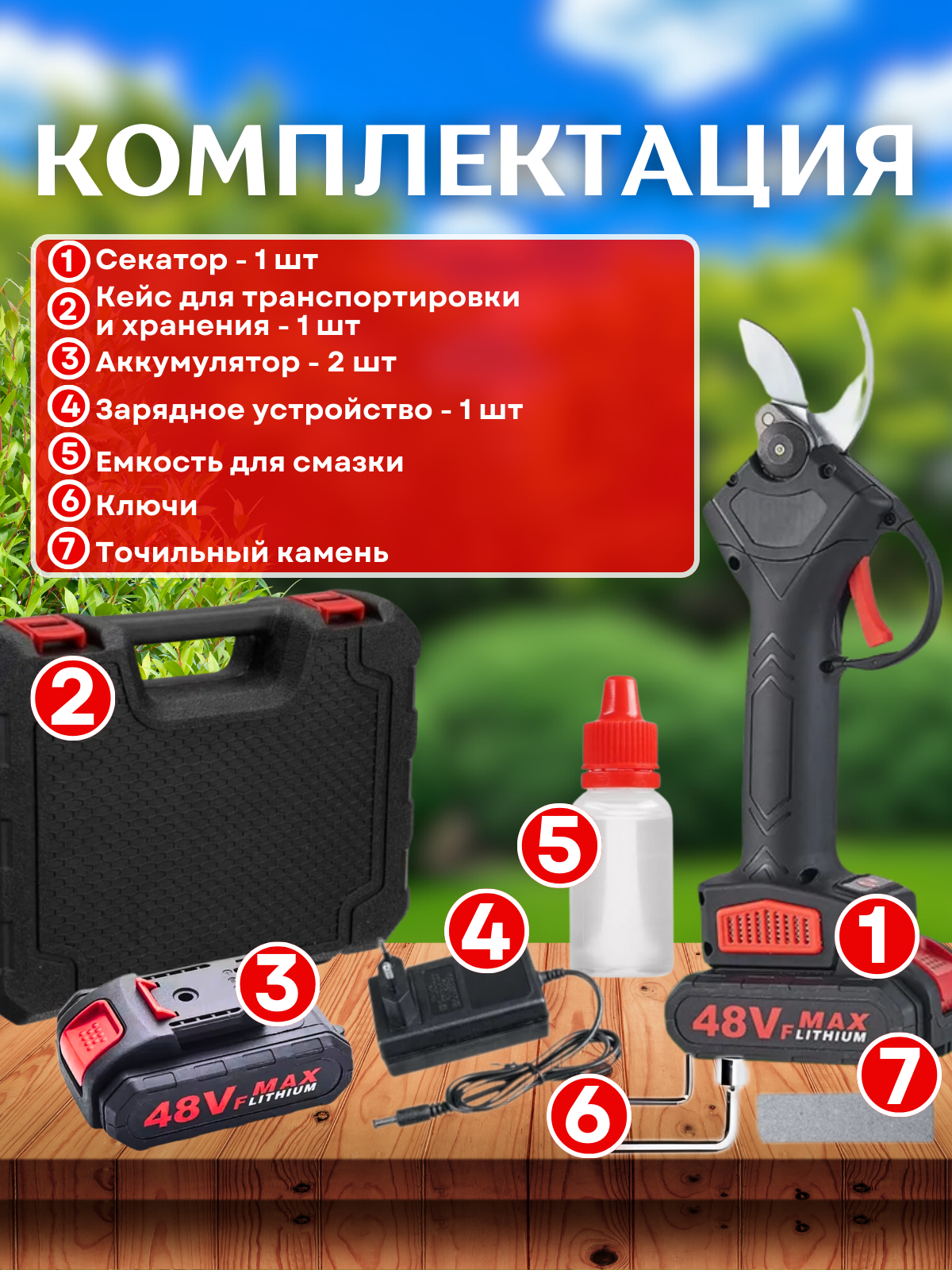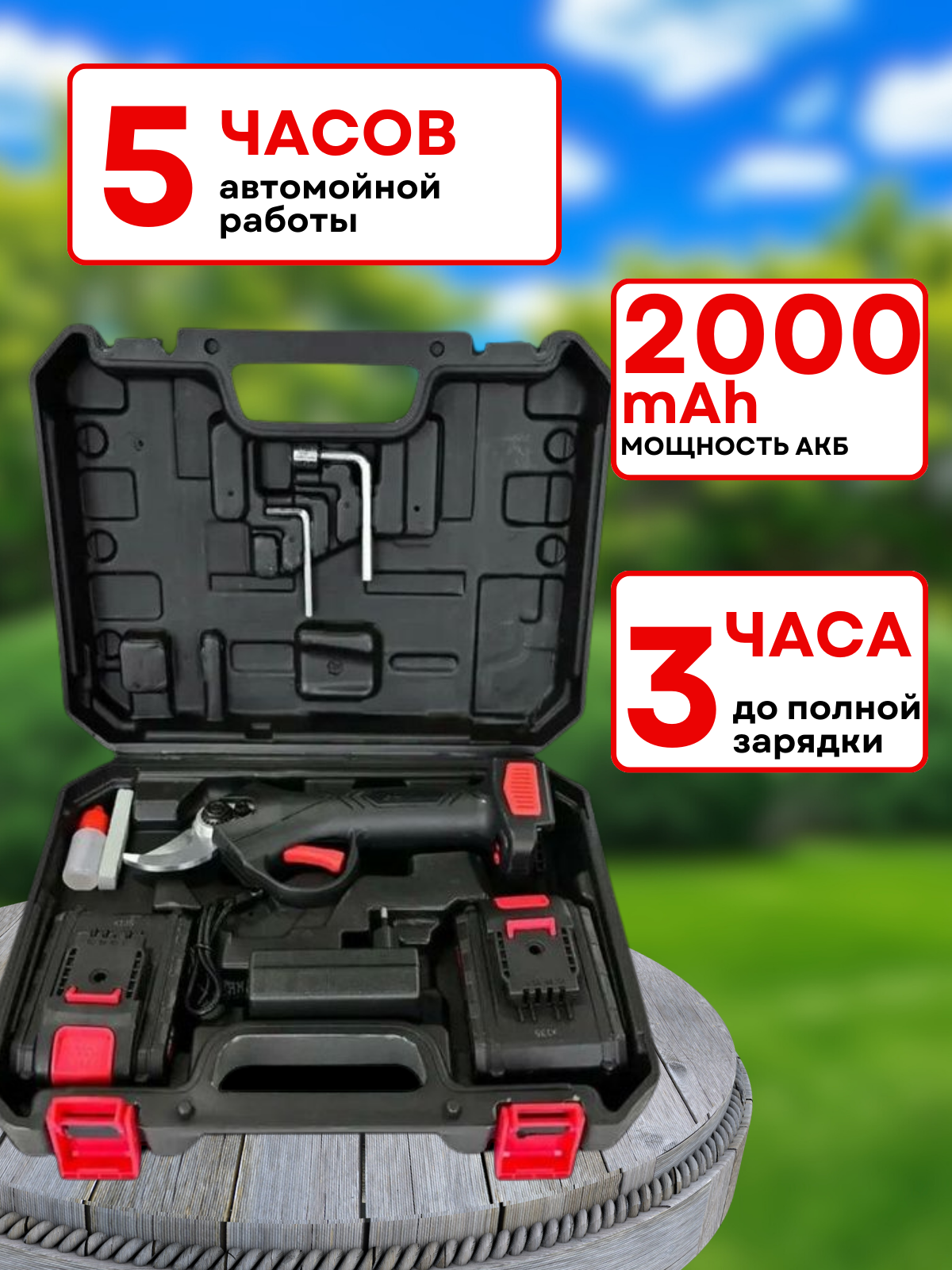 Секатор аккумуляторный садовый с 2 аккумуляторами АКБ, кусторез, сучкорез, черный: сравнение цен, характеристики, фото, актуальное наличие и цены.