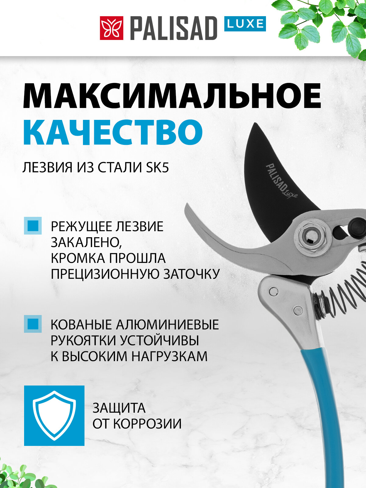 - Защита от коррозии — на режущее лезвие нанесено тефлоновое покрытие, а на опорное — цинковое.