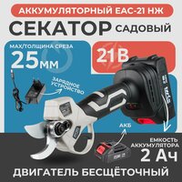 Купить Секатор садовый EWA ЕАС-21-НЖ аккумуляторный, 21 В, 2 Ач, 25 мм, двигатель бесщеточный, в комплекте: АКБ и зарядное устройство с доставкой по всей России.