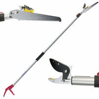 Секатор блочный телескопический + пила садовая HAITEC HT-GS203000 (набор) 3 м. С этим набором вы сможете легко обрезать кусты, деревья и растения, подрезать листву, а также сделать прививки деревьям. Кусторез-секатор изготовлен из высококачественной стали с износостойким покрытием, которое предотвращает налипание на лезвие грязи, смолы и обеспечивает остроту и долговечность лезвий. Удобная эргономичная телескопическая рукоятка высотореза-сучкореза и нейлоновая веревка помогут вам с легкостью управлять им и снизят нагрузку на руки во время работы. Телескопический секатор HT-GS203000 предназначен для быстрого и удобного доступа к кронам и труднодоступным сучьям без стремянки или лестницы. В комплект поставки входит: телескопическая удлинительная штанга; насадка-секатор; насадка-ножовка. Телескопическая удлинительная штанга из алюминиевого сплава диаметром 23 мм, длиной 1,8-3 м. Наибольшая высота обработки может достигать 4,5 м, включая рост человека. Длина пильного лезвия составляет 30 см. 5-ступенчатый блок и небольшой вес секатора способствуют продолжительной работе без перерывов. Вы сможете быстро спиливать сучья и ветки диаметром до 30 мм. Лезвия секатора с покрытием от налипания гарантируют аккуратную и точную обрезку, а также легкость очистки. Ножовка садовая телескопическая по дереву поможет вам с легкостью ухаживать за вашим садом и собирать урожай. Закажите набор сейчас, и ваша работа по уходу за садом будет проще и удобнее!