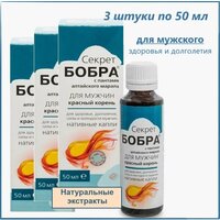 "Секрет бобра" с пантами алтайского марала и красным корнем. Для мужчин, капли 3 шт. по 50 мл. Сашера-МЕД