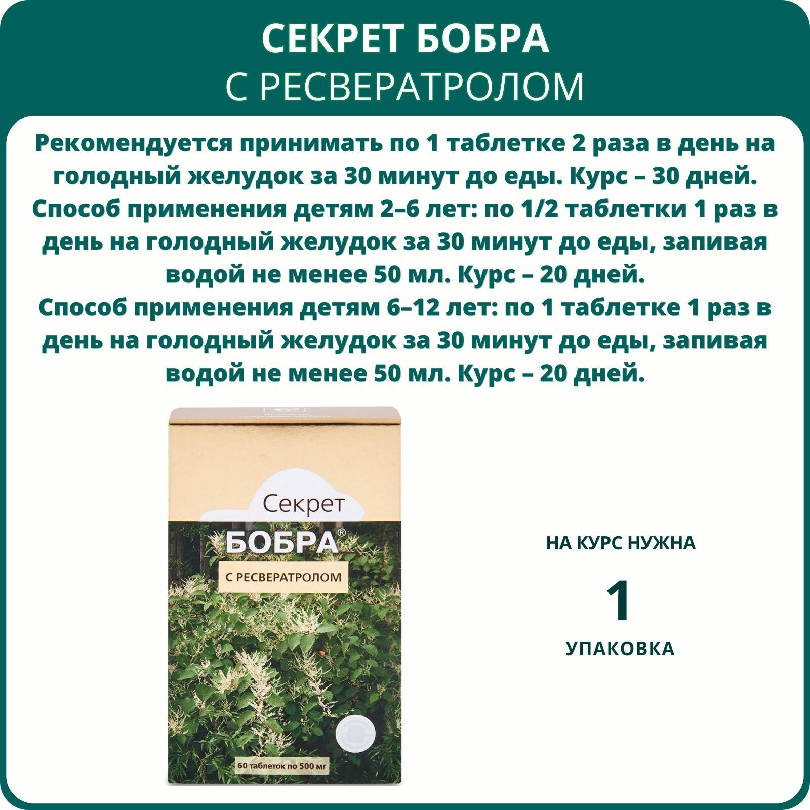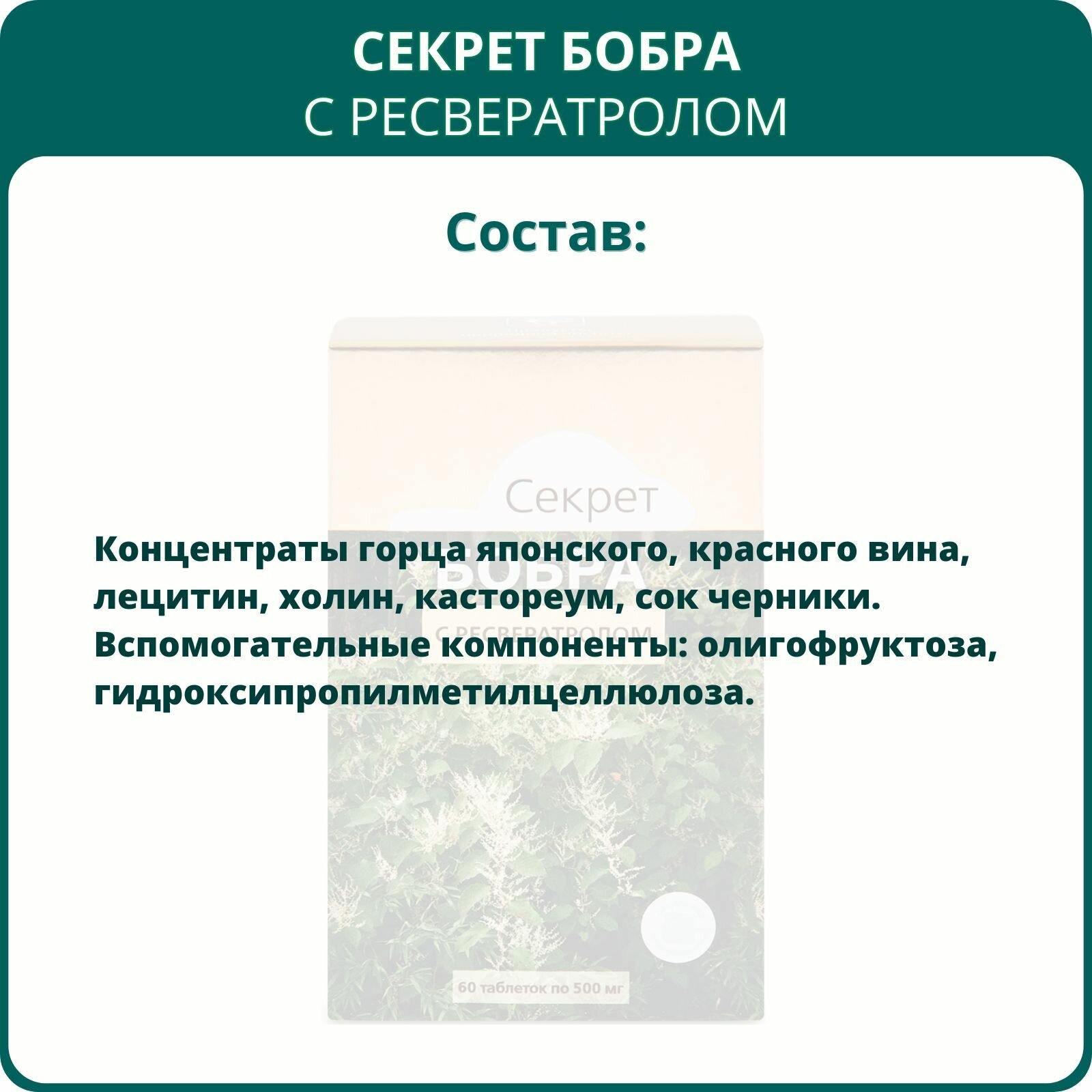 Секрет бобра с ресвератролом, 60 таблеток. — набор 3 штуки: сравнение цен, характеристики, фото, актуальное наличие и цены.