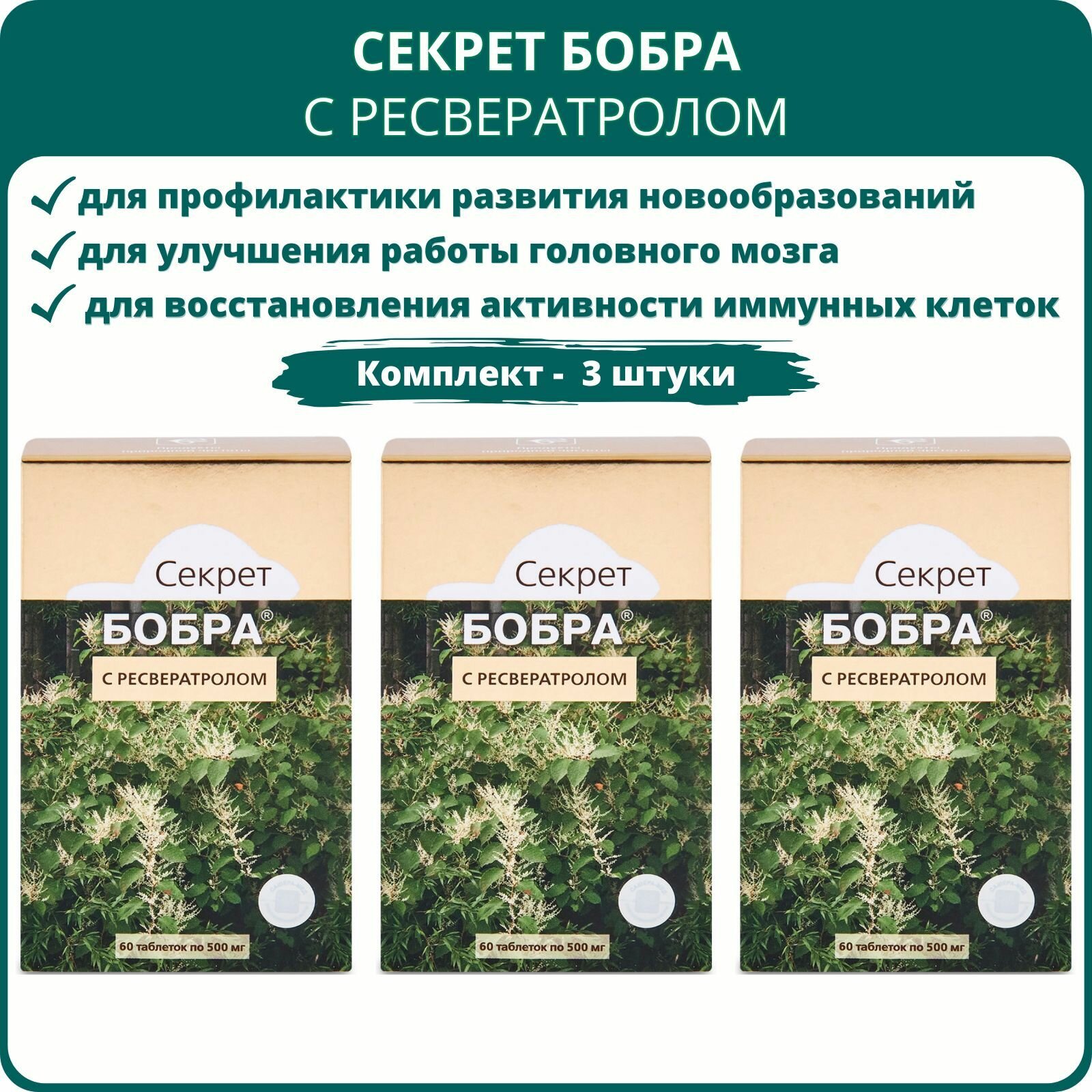 Купить Секрет бобра с ресвератролом, 60 таблеток. — набор 3 штуки с доставкой по всей России.