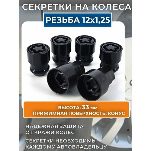 Комплект черных секретных гаек из высокопрочной стали.- Надежная защита от кражи колес. - Резьба: 12х1.25- Высота: 33 мм- Прижимная поверхность: конус. Угол конуса 60 градусов- Класс прочности: 10.9. В комплекте 4 секретных гайки, два оригинальных ключа 19-21 мм. - Рисунок ключа может отличаться (на каждый вид секретки идет несколько вариантов ключей).- Во избежание ошибок при заказе, сверяйте описание с параметрами вашего авто. Черные секретки - это надежные и стильные гайки, предназначенные для защиты колес автомобиля от кражи. Они обеспечивают высокий уровень безопасности и предотвращают несанкционированное снятие колес. Секретки на колеса являются незаменимыми аксессуарами для автомобилистов, желающих обезопасить свое имущество. Гайки-секретки обладают прочной конструкцией и специальной формой, которая затрудняет доступ к ним с помощью обычного инструмента. Они имеют надежную резьбу M12х1,5, что позволяет использовать их на широком спектре автомобилей. Секретки на колеса подходят как для легковых автомобилей, так и для внедорожников. Лучшие секретки колеса, такие как Черные секретки, изготовлены из прочного и долговечного материала, который обеспечивает надежность и долговечность их использования. Они также имеют устойчивое покрытие, которое защищает их от коррозии и повреждений. Приобретая секретки на колеса, вы можете быть уверены в надежной защите своего автомобиля от кражи. Черные колесные секретки, Черные секретки, Черные секретные гайки, секретки на колеса