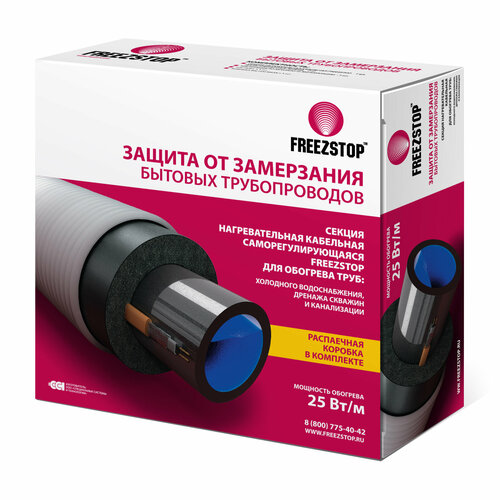 Секция нагревательная кабельная Freezstop предназначена для защиты от замерзания бытовых трубопроводов, обеспечения их сохранности, качественной и надежной работы. Все соединения изготовлены на заводе, нужно только прикрепить кабель на трубу и включить в сеть 220В.