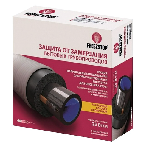 Нагревательная секция для предотвращения замерзания бытовых трубопроводов (водопроводных или канализационных), устанавливается на трубопровод под теплоизоляцию. Тип кабеля: саморегулирующийся. Линейная мощность 25 Вт/м. Степень защиты: IP67. Соединительная и концевая муфты изготовлены в заводских условиях, надежны и герметичны. Секции предназначены для устройства на трубопроводах, диаметром не более 150 мм