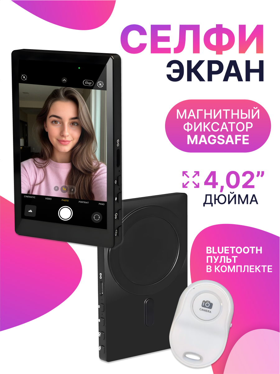 Селфи экран MagSafe для iPhone, беспроводной МагСейф экран для стримов и видео, черный: сравнение цен, характеристики, фото, актуальное наличие и цены.