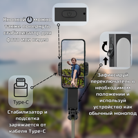 Купить Селфи палка с стабилизацией 4 в 1 штатив трипод Стабилизатор подсветка и блютуз пульт с доставкой по всей России.