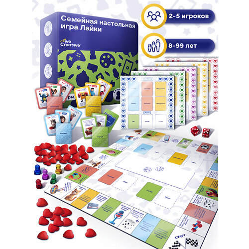«Лайки» — это захватывающая игра настольная, которая идеально подойдет для компании и семейного отдыха. Настольные игры для компании подарит вам массу ярких эмоций и увлекательных моментов. В роли одного из пяти популярных блогеров вы будете бороться за внимание и лайки! Исследуйте игровое поле, собирайте лайки и выполняйте интересные задания, прокладывая путь к вершине популярности. Кто соберет больше всех лайков и станет самым известным блогером? Узнайте в игре «Лайки» — отличной настольной игре для детей и взрослых, которая подарит вам незабываемое время вместе!
