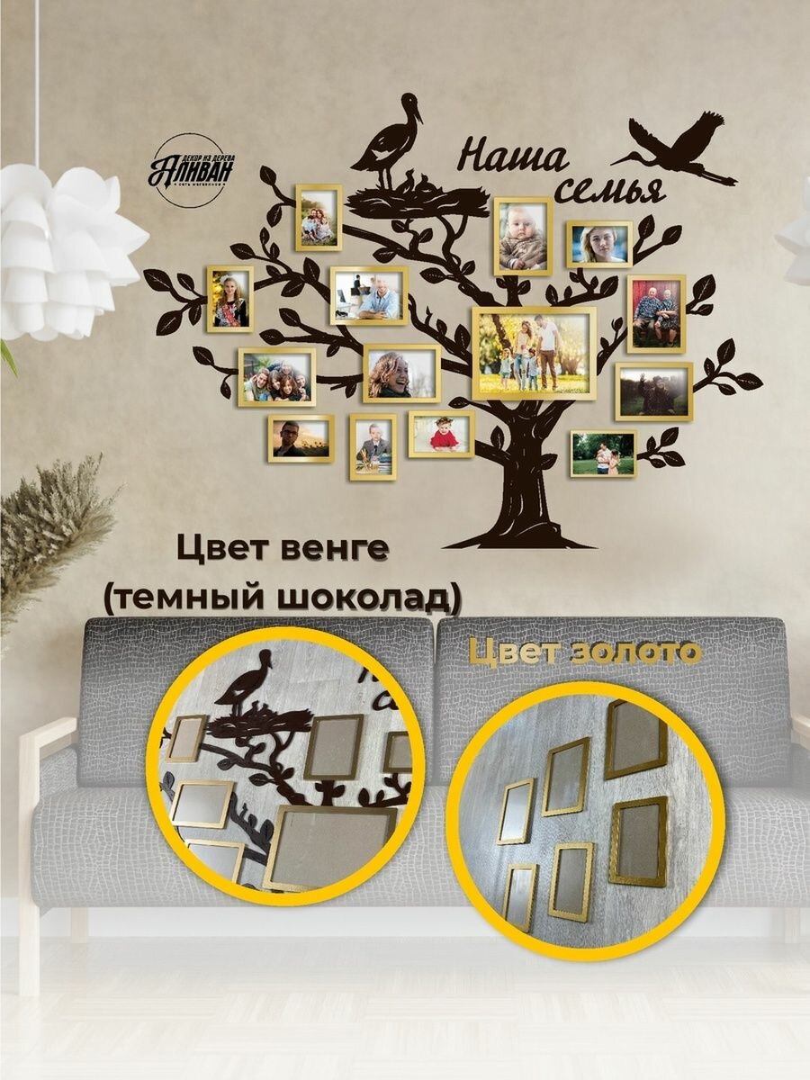 Семейное дерево с фоторамками на стену «Аисты», цвет венге-золото: сравнение цен, характеристики, фото, актуальное наличие и цены.