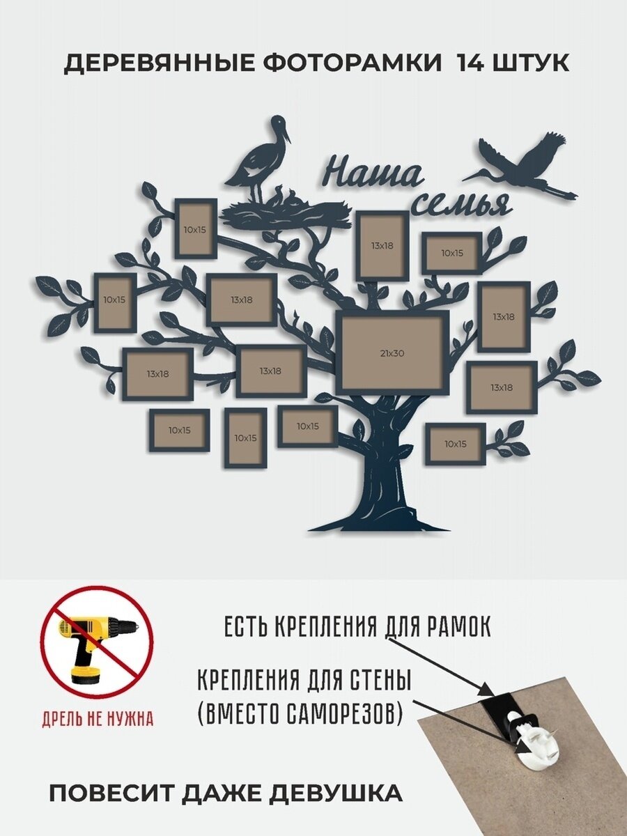 Семейное дерево с фоторамками на стену «Аисты», в темно-сером цвете: сравнение цен, характеристики, фото, актуальное наличие и цены.