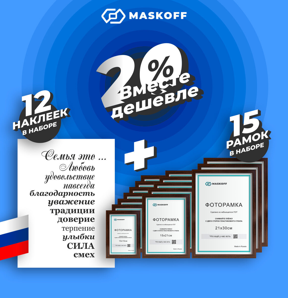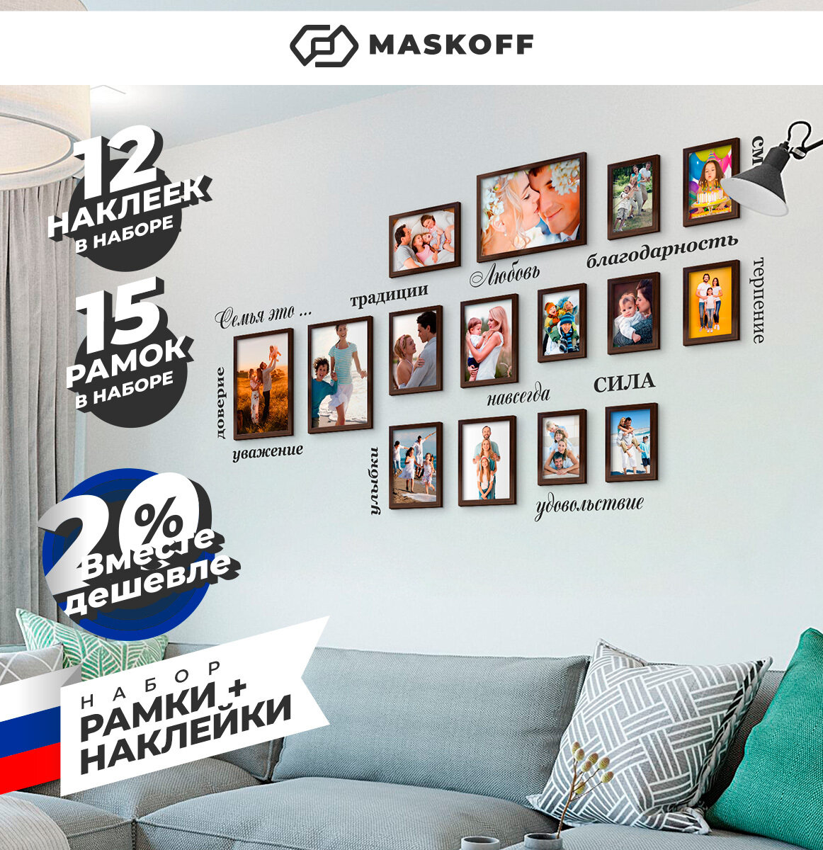 Купить Семейные фоторамки для фотографий + В подарок 12 наклеек, набор рамок для фото, фоторамка коллаж, комплект из фоторамок (21 х 30 см, 15х21, 10×15), пластик, коричневые, 21х30 см, MASKOFF, 15 шт. с доставкой по всей России.
