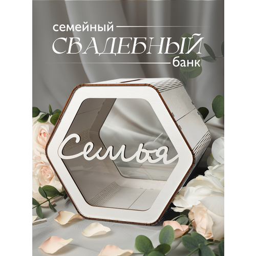 Семейный банк выполнен из высококачественной березовой фанеры и акрилового стекла, что гарантирует его прочность и долговечность. Белый цвет и прозрачные стенки придают ему элегантность и легкость.