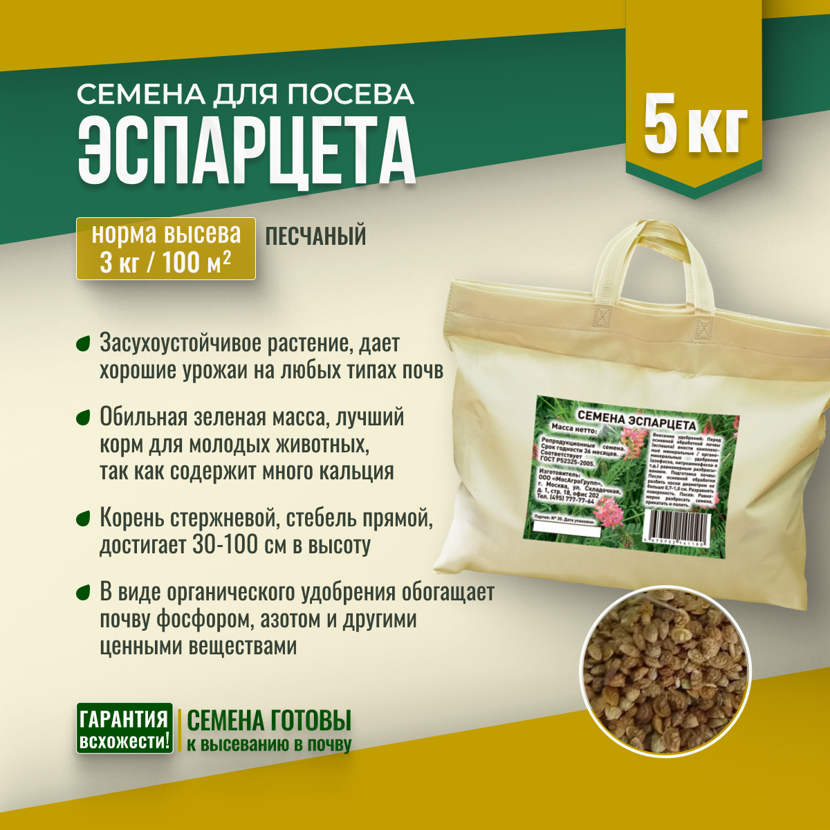 Семена Эспарцета Мосагрогрупп 5кг шопер: сравнение цен, характеристики, фото, актуальное наличие и цены.