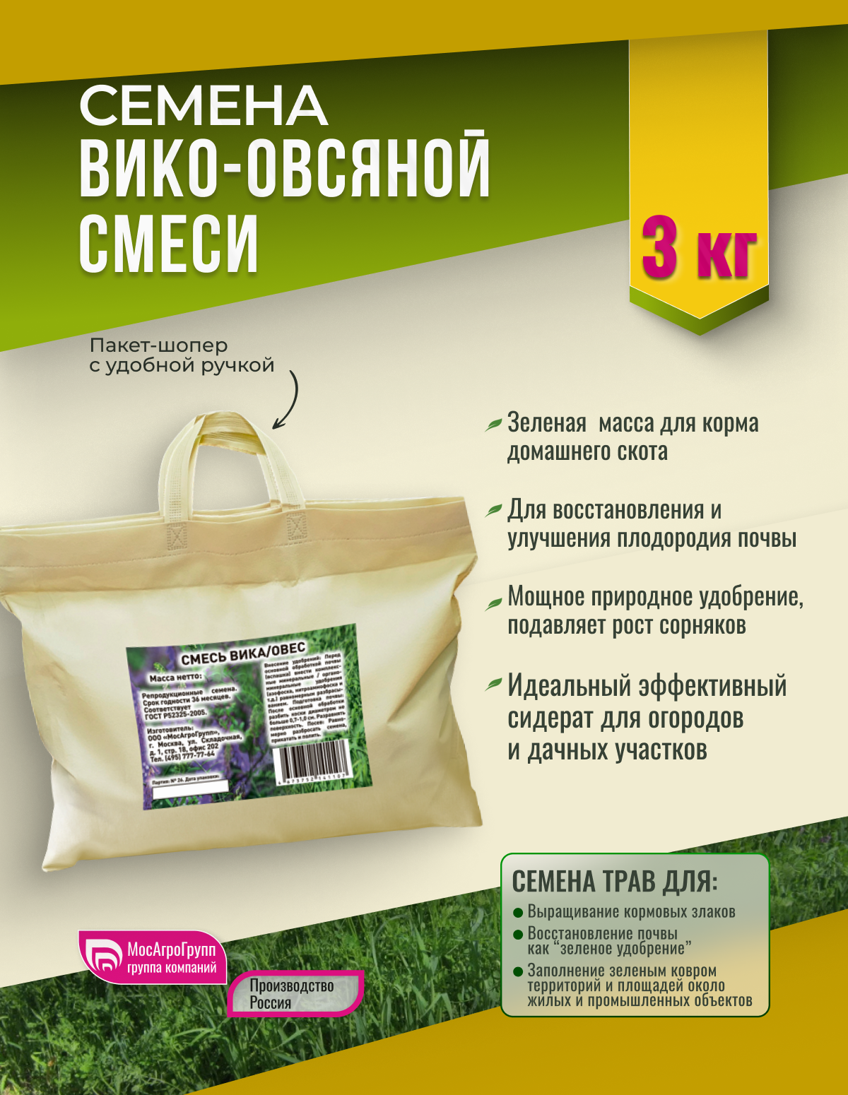 Купить Семена Фестулолиума Мосагрогрупп 3кг шопер с доставкой по всей России.