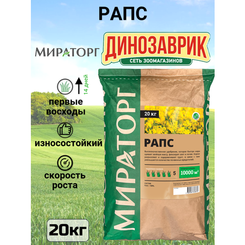 Семена газона Мираторг Рапс 20кг Смесь используется для восстановления и лечения истощенной почвы. Благодаря интенсивному росту подавляет сорняки. Притягивает питательные вещества в верхний слой почвы, делая ее пористой и воздушной. Рекомендуется высевать перед посевом овощных культур.