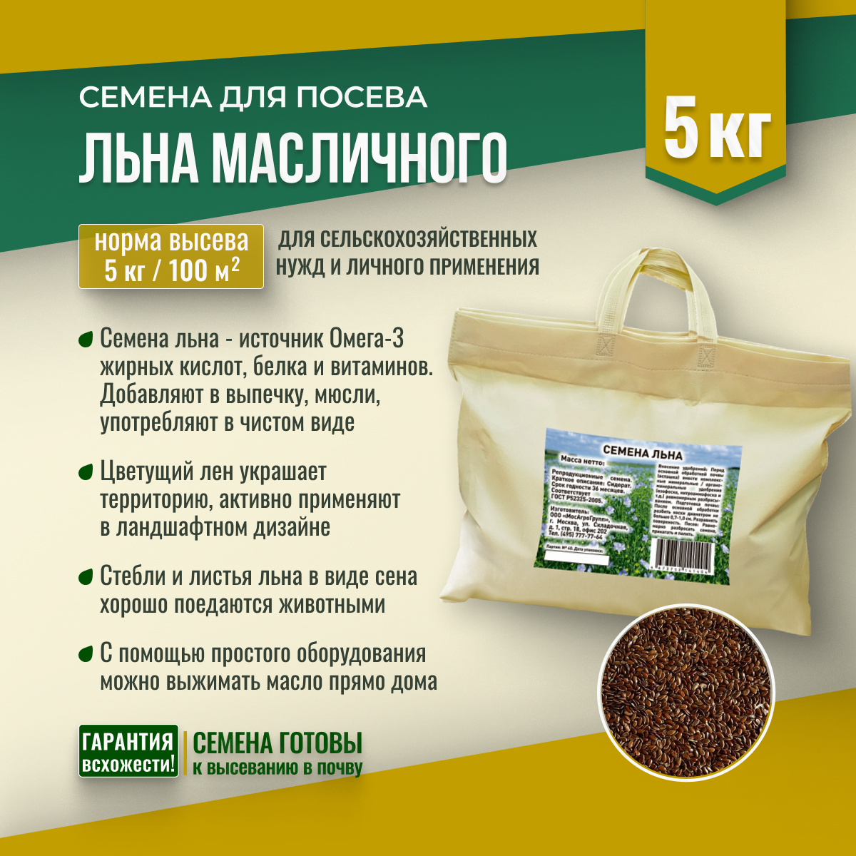 Семена Льна масличного Мосагрогрупп 5кг шопер: сравнение цен, характеристики, фото, актуальное наличие и цены.